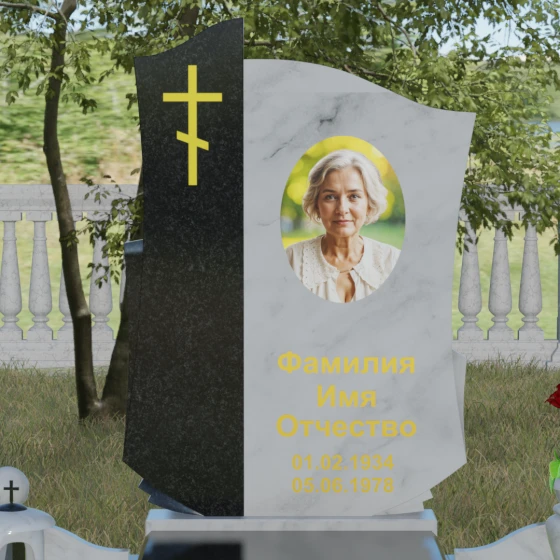Мы понимаем, как важно передать индивидуальность ушедшего человека, поэтому данная модель доступна в 8 эксклюзивных цветовых решениях. Вы можете выбрать благородный черный гранит Габбро-диабаз, изысканный гранит Амфиболит с его неповторимым рисунком, глубокий Балтик Грин, мерцающий Блю Перл или насыщенный Дымовский. Для создания более теплых или контрастных композиций доступны яркий Лезниковский гранит, белоснежный Мансуровский или премиальный мрамор Тассо. Такое многообразие палитры позволяет подобрать камень, который будет максимально точно соответствовать характеру и жизненному пути дорогого вам человека.
