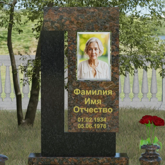 Архитектурное решение стелы предусматривает выделенную зону для портрета, которая может быть оформлена как в виде классической фотокерамики в овальной нише, так и методом художественной лазерной гравировки. Золоченая или вырубленная в камне надпись располагается на контрастном фоне, что обеспечивает отличную читаемость даже на расстоянии. Мы предлагаем этот проект в 8 уникальных цветовых исполнениях, что позволяет наделить мемориал индивидуальным характером. Вы можете выбрать глубокий черный гранит Габбро-диабаз, благородный серо-белый Мансуровский гранит, насыщенный красный Лезниковский, строгий Дымовский, изысканный Блю Перл с его синими искрами, текстурный Амфиболит, зеленый Балтик Грин или белоснежный мрамор Тассо.