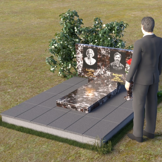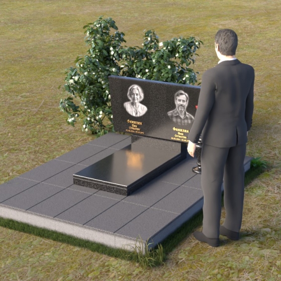 Асимметричная форма стелы не случайна. Она символизирует жизненный путь, который не всегда бывает прямым и предсказуемым. Скошенный угол, напоминающий крыло, несет в себе идею защиты и утешения, а также веру в загробную жизнь. Зеркальная полировка, в свою очередь, отражает свет и символизирует чистоту души и вечную память. Горизонтальная плита, расположенная под стелой, олицетворяет землю, на которой покоится прах усопших, и одновременно служит связующим звеном между земным и небесным мирами. Общий вид памятника создает ощущение покоя и умиротворения, приглашая к тихой молитве и воспоминаниям.
