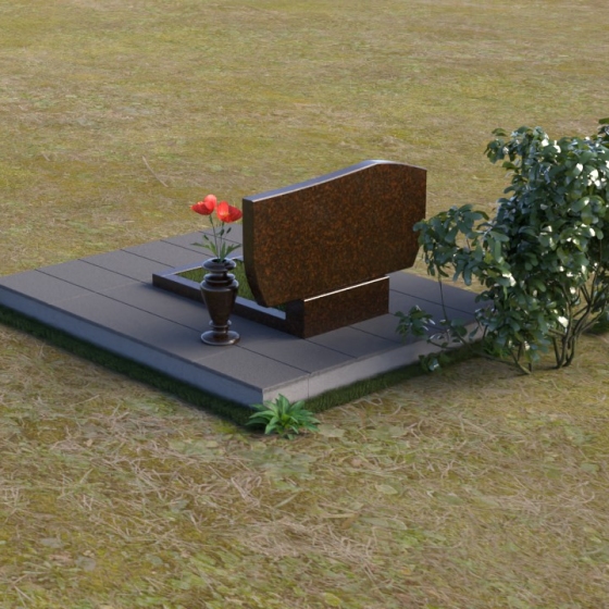 Величественная стела памятника ПГ020 представляет собой монументальное сочетание строгости линий и мягких, сглаженных углов, создающих впечатление надежности и умиротворения. Верхняя часть стелы имеет плавный, волнообразный изгиб, словно склоненная голова в знак скорби и уважения. Боковые грани искусно скошены, образуя элегантные фаски, которые придают памятнику дополнительный объем и глубину. Зеркальная полировка черного гранита отражает небо, создавая ощущение легкости и воздушности, несмотря на массивность конструкции. Нижняя часть стелы переходит в прямоугольное основание, которое надежно удерживает всю композицию. Рядом располагается горизонтальная плита, также выполненная из полированного гранита, создавая дополнительное пространство для цветов или памятных вещей.