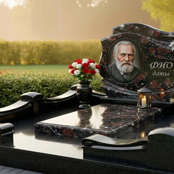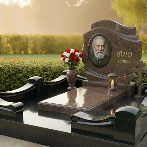 Оформление: Учитывая плавные изгибы и элегантную форму стелы, мы рекомендуем использовать для гравировки портрета метод лазерной или ручной гравировки, что позволит добиться максимальной детализации и глубины изображения. Для ФИО и дат жизни идеально подойдут классические шрифты без излишних декоративных элементов, чтобы сохранить чистоту и строгость линий. Расположение портрета в верхней части стелы, а текстовой информации ниже, создаст гармоничную композицию, которая будет легко читаться и восприниматься. Возможно также добавление символических элементов, таких как ветви, цветы или религиозные символы, которые могут быть деликатно вписаны в общую концепцию, подчеркивая индивидуальность усопшего.