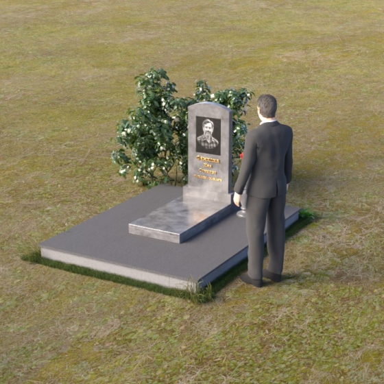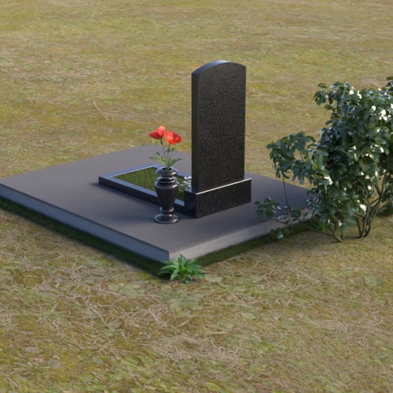 Благодаря своей лаконичной форме, эта стела предоставляет широкие возможности для оформления. Портрет усопшего будет гармонично смотреться как в верхней части стелы, так и чуть ниже центра. Золотое тиснение имени и дат жизни будет элегантно выделяться на фоне полированного камня, создавая четкий и легко читаемый образ. Небольшая тумба, расположенная перед стелой, может служить местом для возложения цветов и памятных вещей. Мы рекомендуем выбирать для этой модели сдержанные, лаконичные шрифты, которые подчеркнут общую элегантность композиции. Подумайте о возможности добавления небольшого бронзового барельефа или скульптуры, отражающей профессию или увлечения ушедшего человека. Это добавит индивидуальности и сделает место памяти еще более личным и значимым. Ваза, выполненная в едином стиле с монументом, завершит композицию и придаст ей законченный вид.