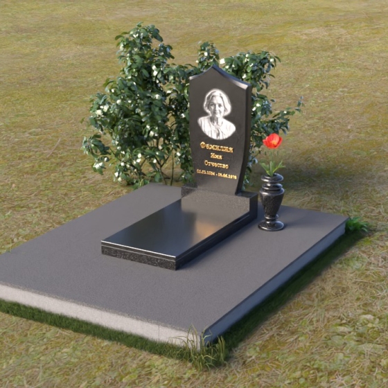 Форма стелы идеально подходит для размещения портрета усопшего. Изображение, выполненное методом гравировки, будет четко выделяться на фоне отполированного камня, сохраняя свою выразительность на протяжении десятилетий. Золотое тиснение имени, отчества и дат жизни добавляет памятнику особую торжественность и значимость. Важно отметить, что горизонтальная плита, расположенная у основания стелы, может служить местом для размещения цветов или памятных вещей. Ее зеркальная поверхность визуально расширяет пространство и создает ощущение легкости и воздушности.