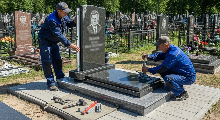 Ответ: Ваше присутствие приветствуется, но не является обязательным. Мы понимаем, что у вас могут быть свои дела или вам может быть эмоционально тяжело находиться на кладбище во время работ. Если вы не можете или не хотите присутствовать, наша бригада предоставит вам полный фотоотчет о проделанной работе: от подготовки фундамента до финального вида установленного мемориала. Вы сможете убедиться в качестве, не выезжая на место.