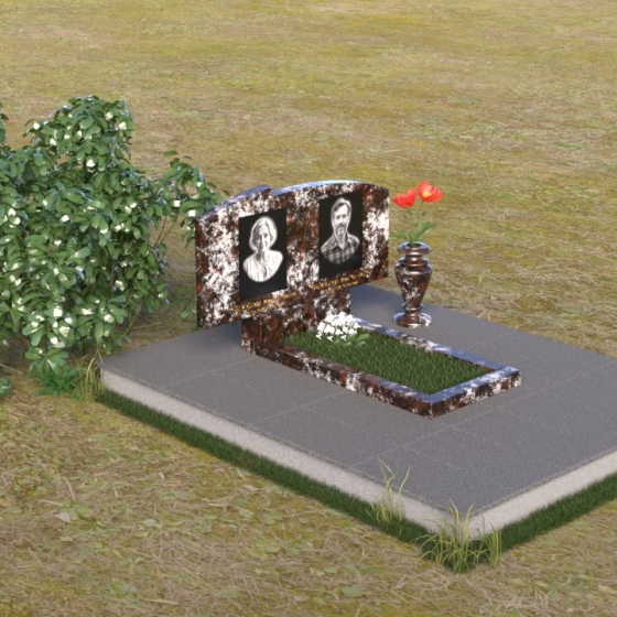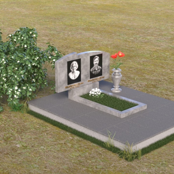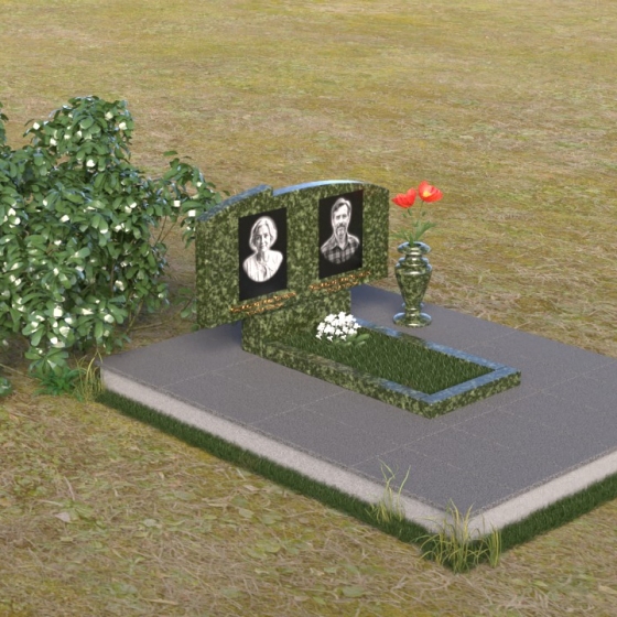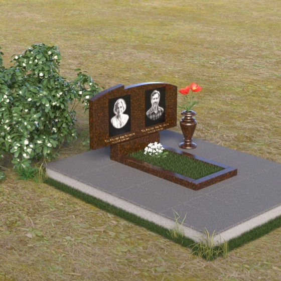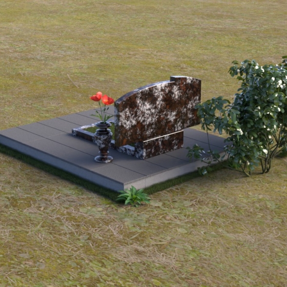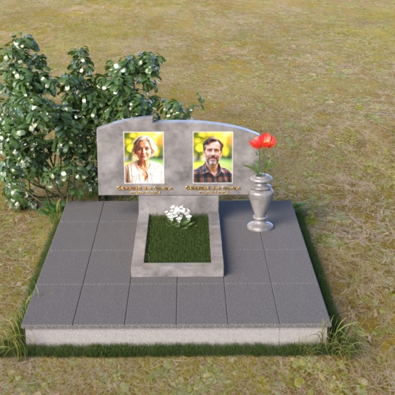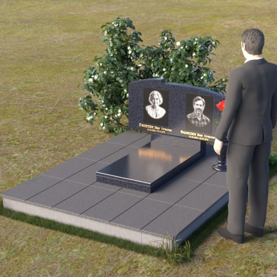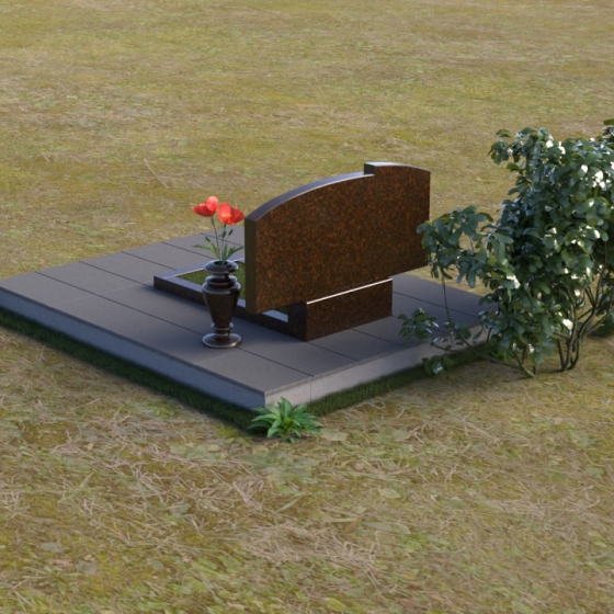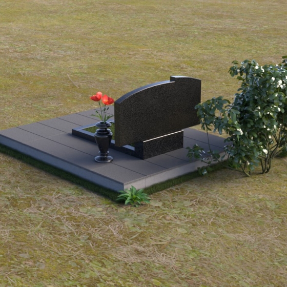 Геометрия памятника тщательно продумана. От массивного основания, обеспечивающего устойчивость всей конструкции, взгляд переходит к плавно изогнутой стеле. Верхняя часть стелы, с ее мягкими дугами, словно стремится ввысь, символизируя духовное вознесение. Обработка граней выполнена с особой тщательностью, что подчеркивает четкость линий и создает ощущение завершенности. Сбоку от стелы размещена ваза, выполненная в едином стиле с памятником, она предназначена для живых или искусственных цветов, дополняющих композицию.