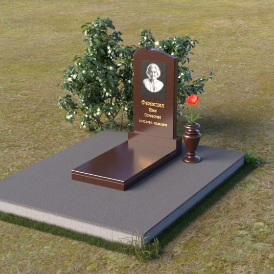 Форма арки, использованная в верхней части стелы, символизирует небесный свод, защиту и покровительство высших сил. Она создает ощущение покоя и умиротворения, напоминая о вечном пристанище души. Прямоугольное основание, напротив, олицетворяет земную твердь, незыблемость памяти и преемственность поколений. Сочетание этих двух форм создает гармоничный образ, объединяющий земное и небесное, временное и вечное. Зеркальная полировка камня символизирует чистоту помыслов и искренность чувств, которые испытывают близкие к ушедшему. Этот памятник – не просто знак скорби, а символ надежды и веры в бессмертие души.